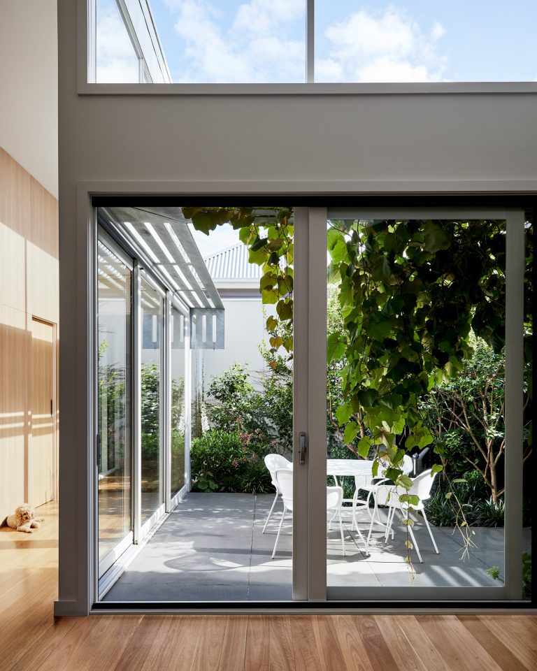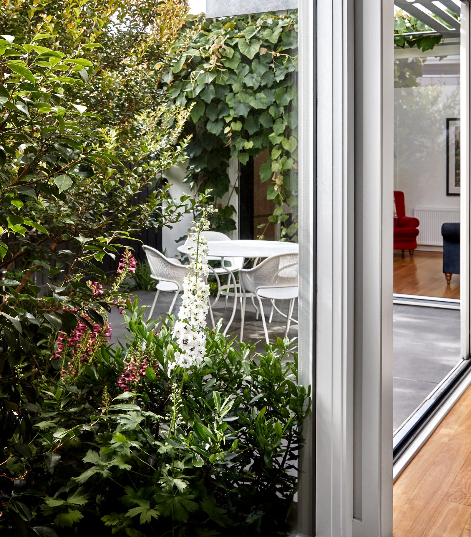 Three unique ‘garden rooms’ thoughtfully connect this graceful Edwardian home to the outdoors. Each space has its own micro-climate, featuring plants selected as much for their orientation towards the sun as for visual impact through colour, texture and seasonal change. A sunny ‘garden room’ is layered with perennials, smoke bush and ornamental grasses; an ‘entertaining room’ is draped with crimson glory vine and a copse of crepe myrtles; and a ‘semi-shaded room’ is centred around a Japanese maple. Designed in collaboration with Zwei Interiors and Architecture, this stylish and refined project makes the most of a new pavilion’s vast windows and doors, inviting the garden into a home where the outdoors are visible from every room.