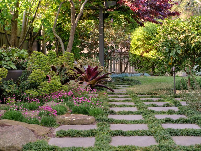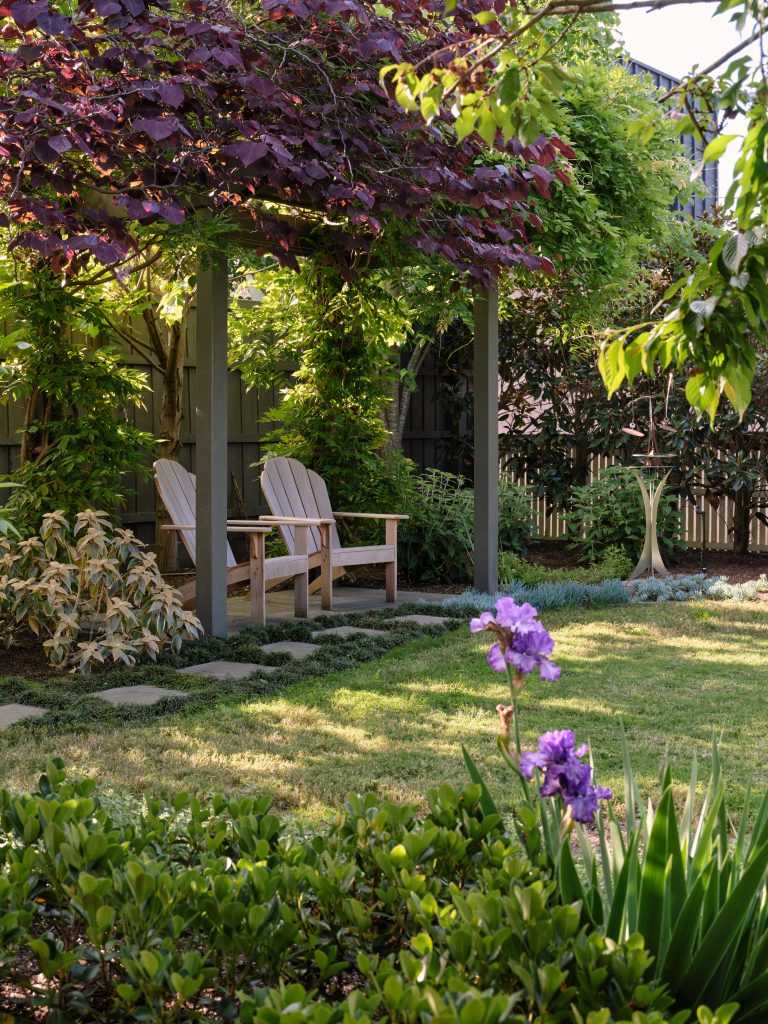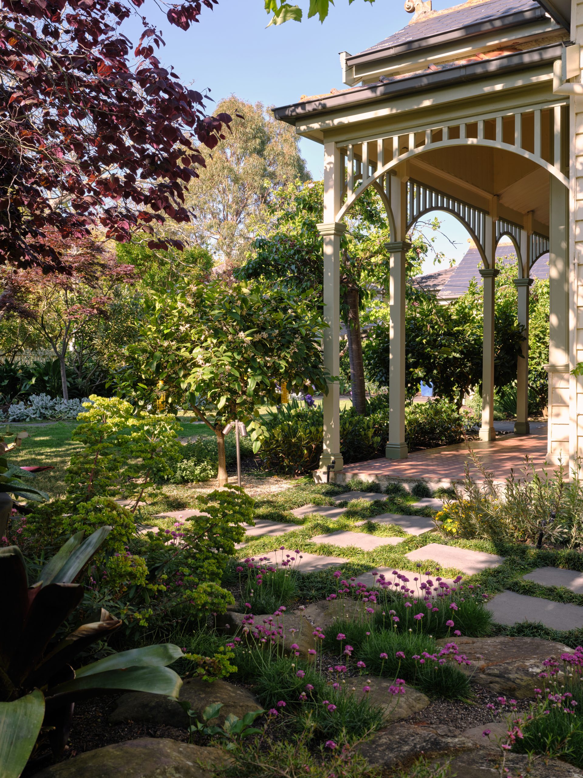 Sometimes life’s journey brings you to a place, a new home far away, and you yearn for the place of your childhood memories. Our clients wanted a garden that connected their past to the present. We created a dreamy garden for them where they could reminisce about their childhood along paths that take them past proteas, cotyledon and African roses, wisteria, catmint and bearded irises. We designed a vine-covered pergola over the path leading to the kitchen garden from which the family now shares its herbs, fruit and vegetables with new friends. We built a drystone wall on which people can sit and talk, and installed a special seating area where, in the quiet of the evening, our clients can recline in their favourite garden chairs, and ponder or be in the moment.