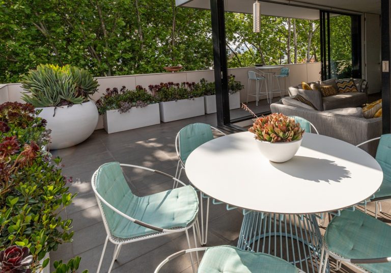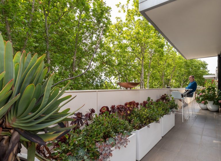 Set amid a canopy of London plane trees, this apartment terrace garden incorporates a unique succulent collection inherited from the owner’s late mother. A restrained scheme featuring streamlined pots and minimalist furniture centres around two al fresco areas and complements the home’s contemporary architecture. The garden is a breathtaking and modern study in colour, texture and form, which is just as well, since it’s visible from all aspects of the apartment. Marrying practical considerations – garden furniture and pots designed to withstand climate extremes – and timeless beauty, Treetops is a fitting and fun setting for a beloved succulent collection.